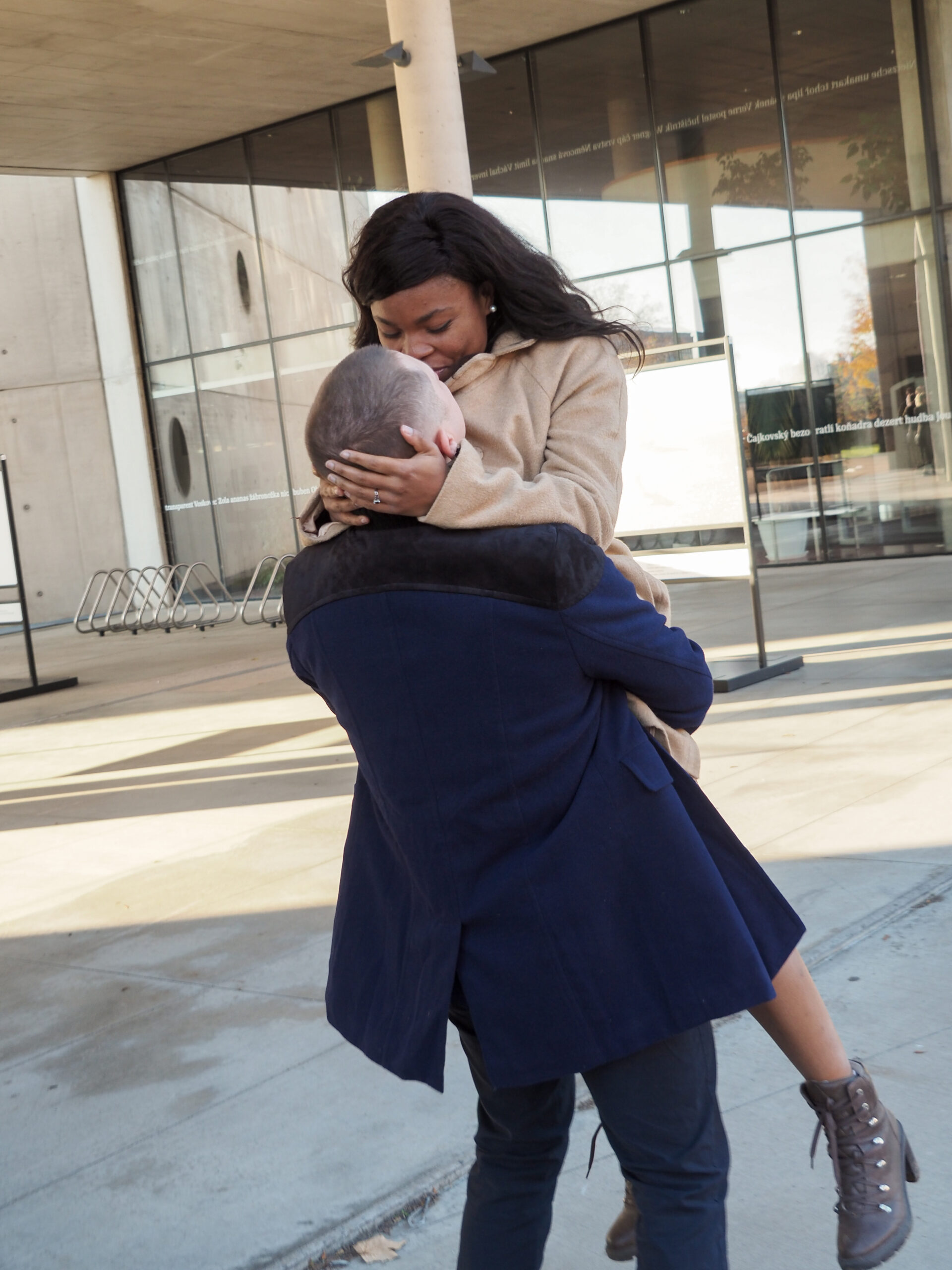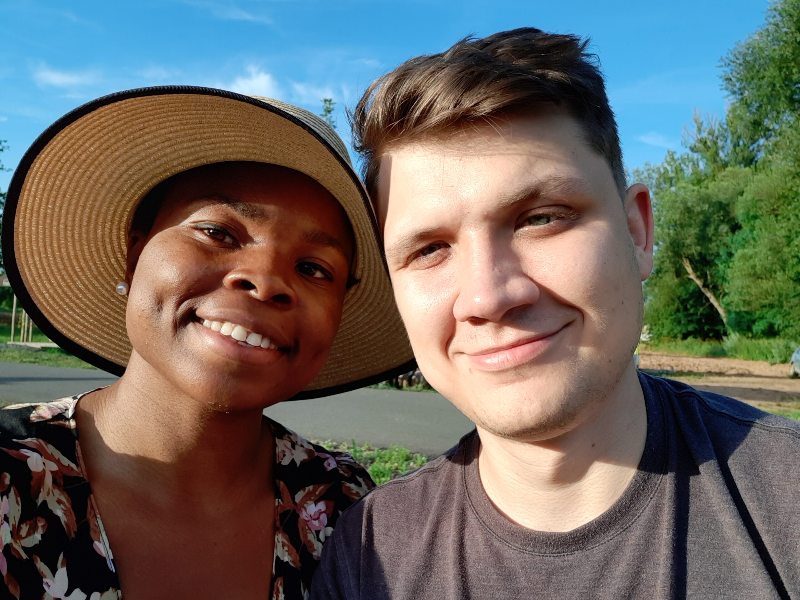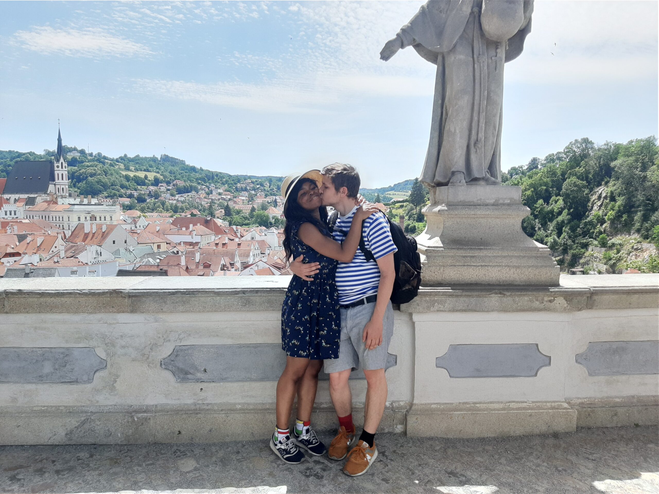 We first met on an app, as a lot of couples do during the 21st century. We decided to meet each other for a language exchange, Tolu would practice Czech with Dan and Dan would practice English with Tolu. Our first in-person meet was at a cafe by a library.